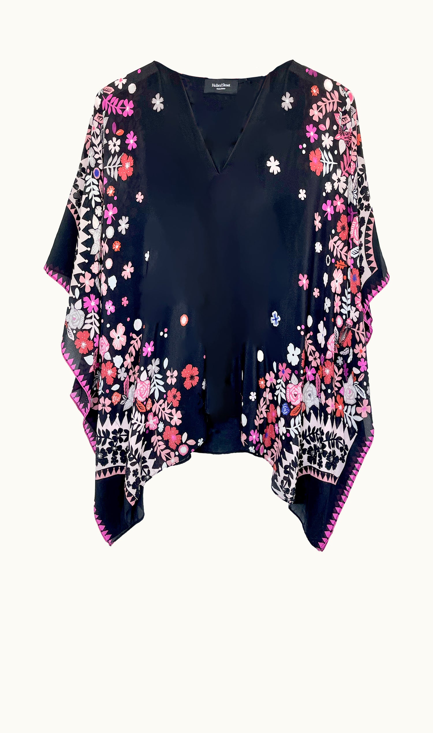 Discover the Cocooned Collection from Holland Street, where hand‑drawn printed silk kaftans...