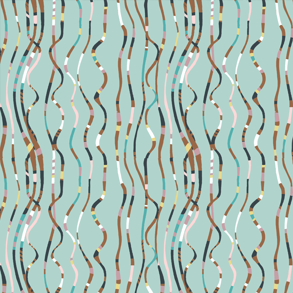 This linen print design, affectionately known as Pick-up Sticks, features a simple yet rhythmic pattern reminiscent of the childhood game. However, its true inspiration comes from the undulating chalkstream rivers of Dorset or the flowing water that carves paths towards the beach. The gentle, meandering lines weave naturally across the fabric, creating a dynamic and organic effect.