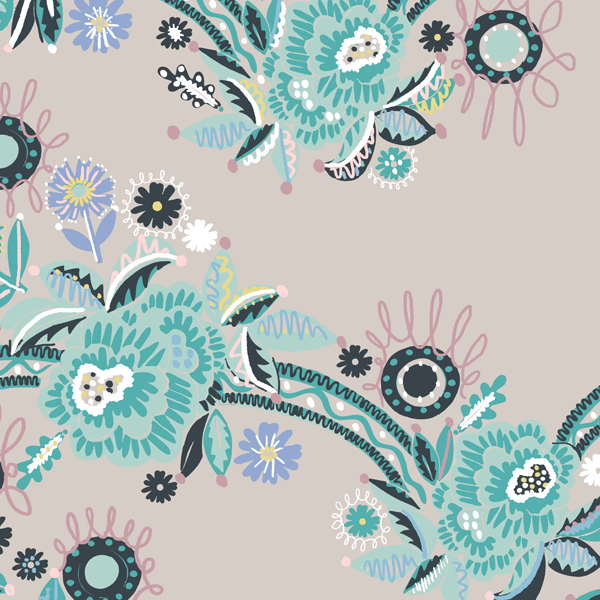 Ribbon is a timeless yet modern interpretation of vintage fabric. The design features bold, stylised peony flowers arranged rhythmically along an elegant decorative ribbon. Delicate ditsy flowers and carefully placed leaves are scattered across the horizontal lines, beautifully framing the fabric’s meterage.